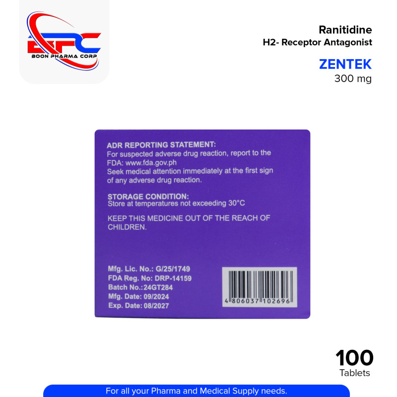 Ranitidine (Zentek) 300mg Film Coated Tablet 100's