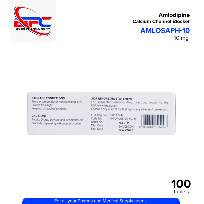 AMLOSAPH (Amlodipine) is a calcium channel blocker used to treat high blood pressure and angina. By relaxing the blood vessels, it helps improve blood flow, lower blood pressure, and prevent chest pain.