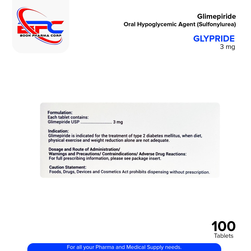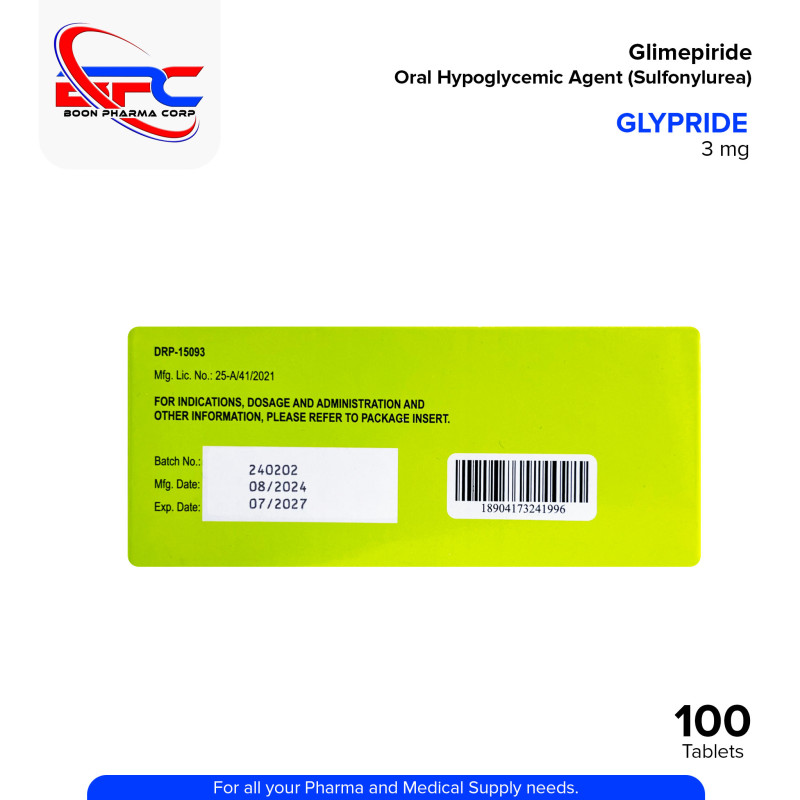 GLYPRIDE Glimepiride 3 mg Tablet is an oral hypoglycemic agent under the sulfonylurea class, used to help support blood sugar control in individuals with type 2 diabetes. It works by stimulating the pancreas to release insulin. Best used with proper diet and exercise. Always consult your healthcare professional before use.