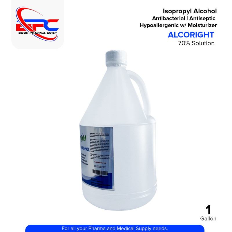 ALCORIGHT 70% Isopropyl Alcohol is an antiseptic and disinfectant solution used for external application to help reduce microorganisms on skin and surfaces. It is commonly used for wound cleansing, hand sanitation, and surface disinfection in medical facilities, workplaces, and households.