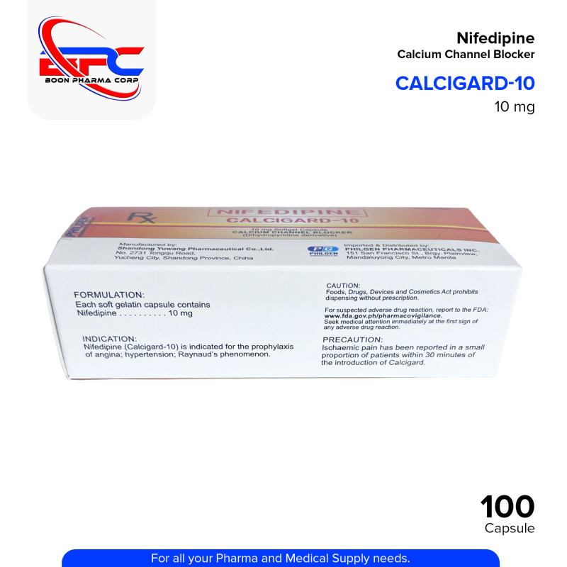 CALCIGARD (Nifedipine) is a calcium channel blocker used to manage high blood pressure and angina. It works by relaxing the muscles of the heart and blood vessels, improving blood flow and reducing cardiovascular strain.