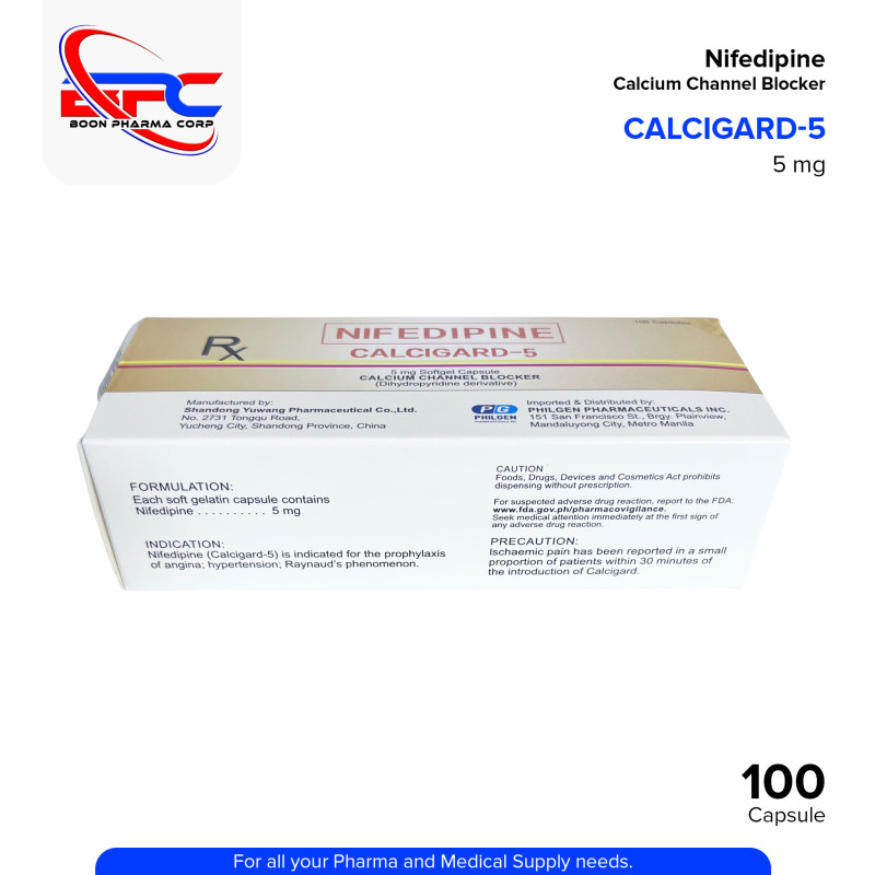 CALCIGARD (Nifedipine) is a calcium channel blocker used to treat high blood pressure and angina (chest pain). It works by relaxing and widening blood vessels to improve blood flow and reduce heart workload.