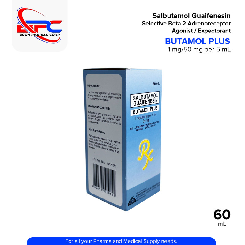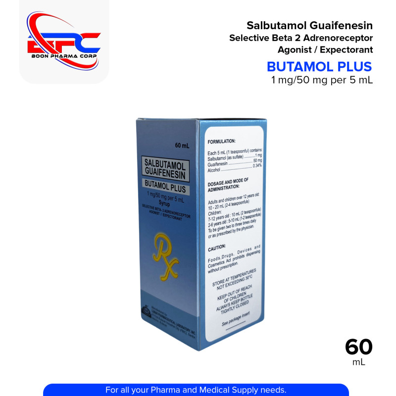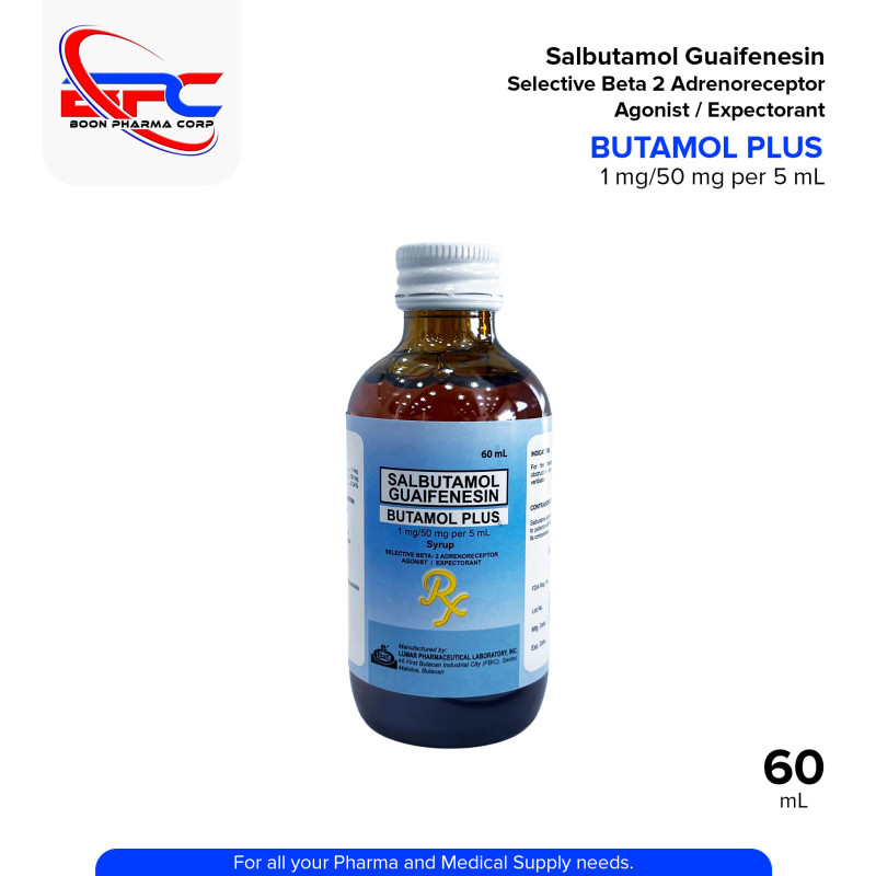BUTAMOL PLUS Syrup combines Salbutamol, a selective beta-2 adrenoreceptor agonist that helps support easier breathing by relaxing bronchial muscles, with Guaifenesin, an expectorant that helps loosen and clear mucus. This combination supports respiratory comfort in conditions with cough and bronchial congestion. Always consult your healthcare professional before use.