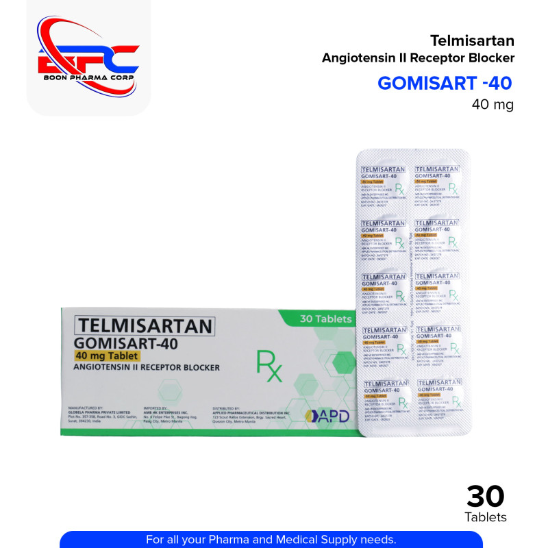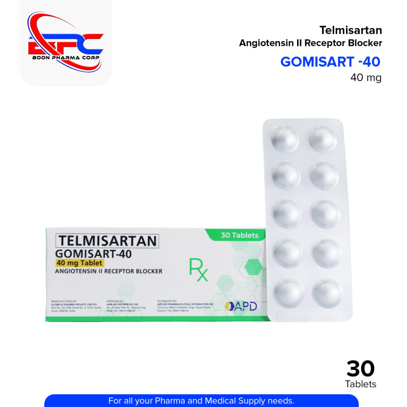 Telmisartan (Gomisart) 40mg Tablets are used to treat high blood pressure (hypertension) and help reduce the risk of cardiovascular events. These tablets work by relaxing blood vessels, allowing for smoother blood flow. Each pack contains 30 tablets, providing a convenient 1-month supply.