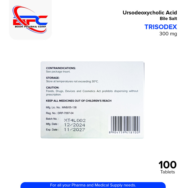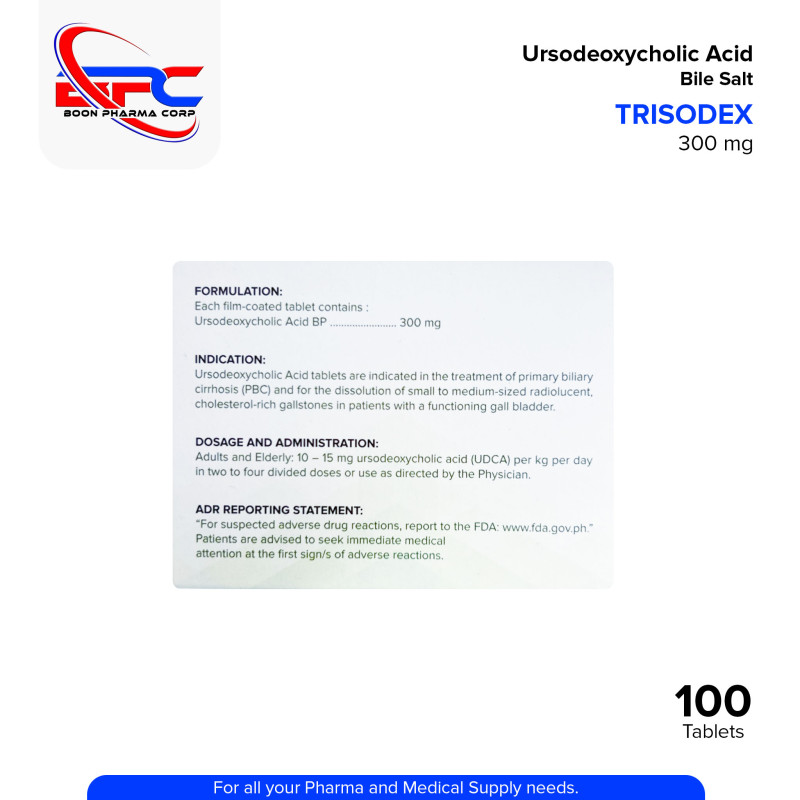TRISODEX (Ursodeoxycholic Acid) is used to dissolve certain types of gallstones and to treat primary biliary cholangitis (PBC). It works by decreasing the production of cholesterol and by dispersing cholesterol into bile so it can pass more easily.